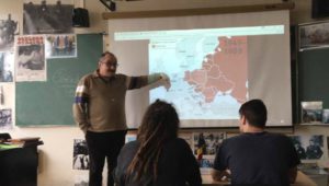 Omdat de zesdejaars oorlogen leren analyseren en begrijpen in de lessen geschiedenis, is hij één lesuur komen spreken over zijn ervaringen.
